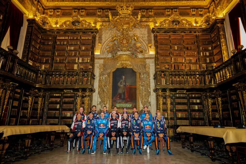 Depois, os 16 pilotos e navegadores rumaram à histórica Biblioteca Joanina da Universidade de Coimbra, datada de 1717, para uma fotografia oficial.