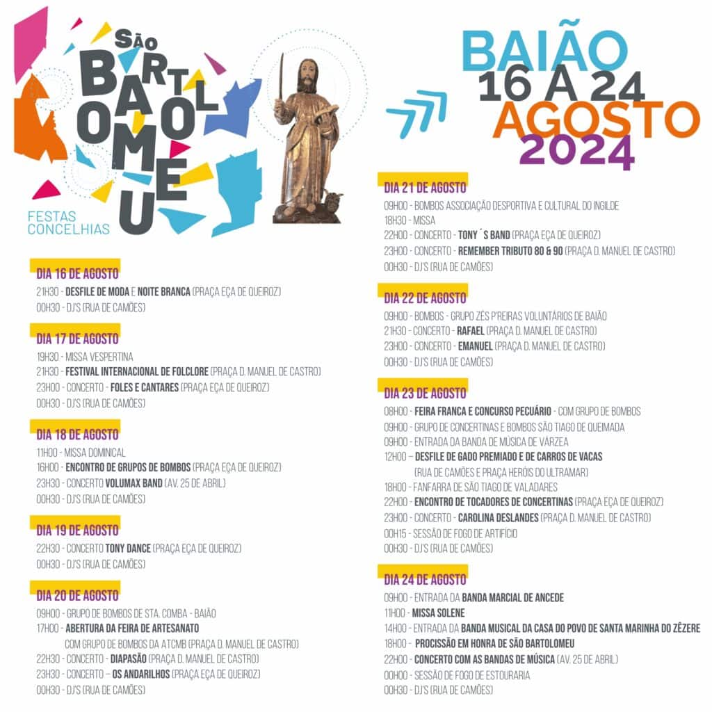 Prepare-se para as Festas Concelhias e de São Bartolomeu, no concelho de Baião, que decorrem de 16 a 24 de agosto, com Diapasão, Emanuel e Carolina Deslandes.