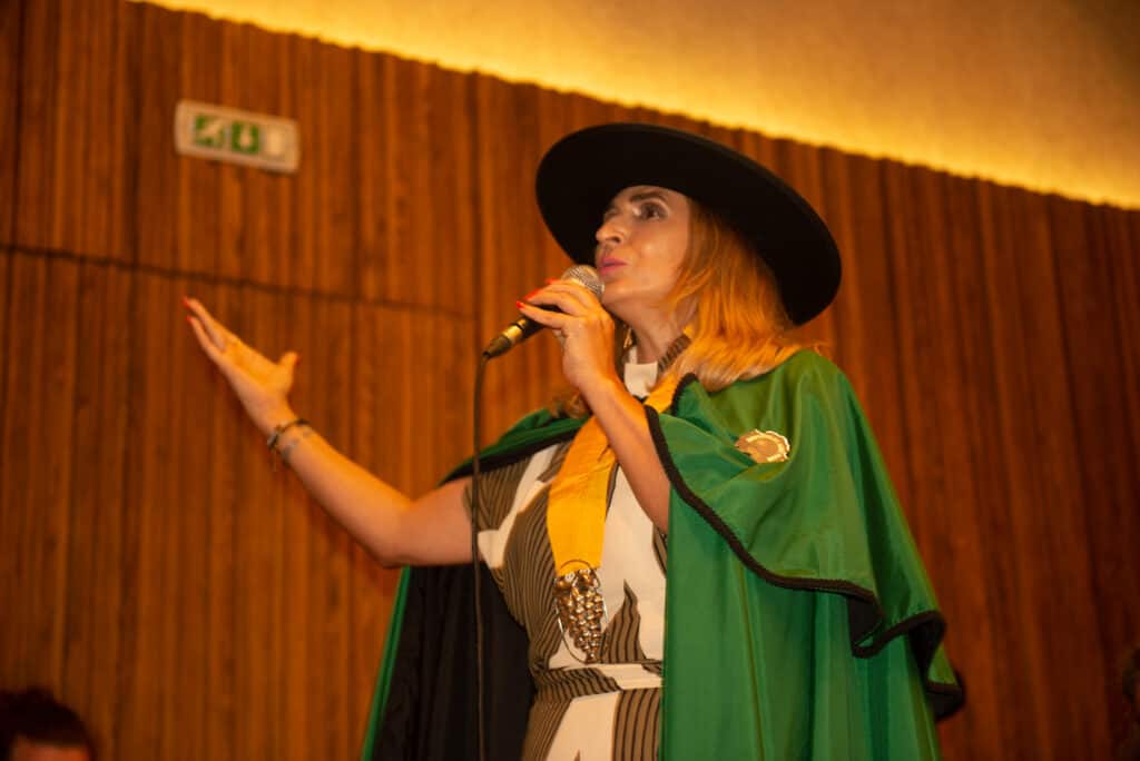 No final da sessão, foi feita a apresentação e prova do vinho da confrade Cristina Lima, proprietária da Quinta de Soutelos, em Canedo, Celorico de Basto, Dom Basto Escolha. E a terminar foi cantado o Hino da Confraria dos Vinhos Verdes pela voz da confrade Cristina Lima, também fadista.